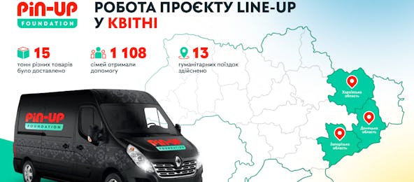 Благодійний фонд PIN-UP Foundation, який з минулого року допомагає постраждалим від воєнних дій українцям, почав реалізацію власного проєкту — LINE-UP. Команда волонтерів розвозитиме гуманітарну допомогу в прифронтові райони України.
